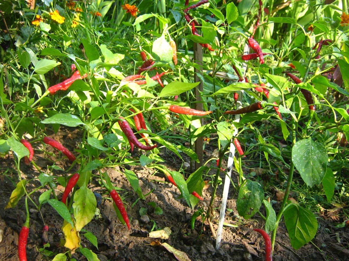 Перец горький на грядке