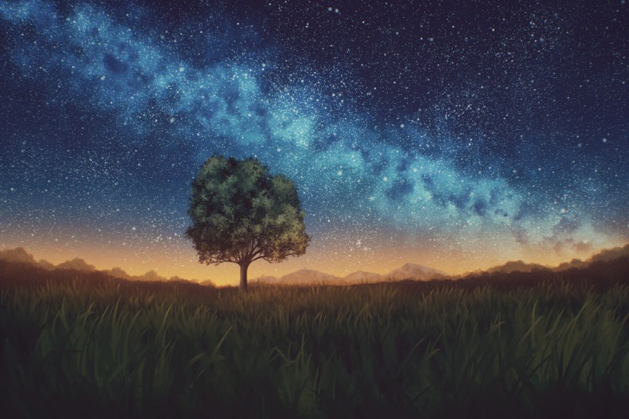 Дерево под звездным небом