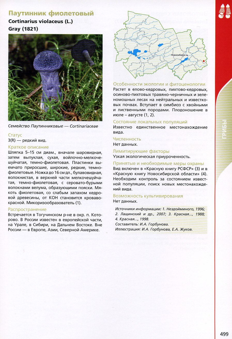 Грибы занесенные в красную книгу России паутинник фиолетовый