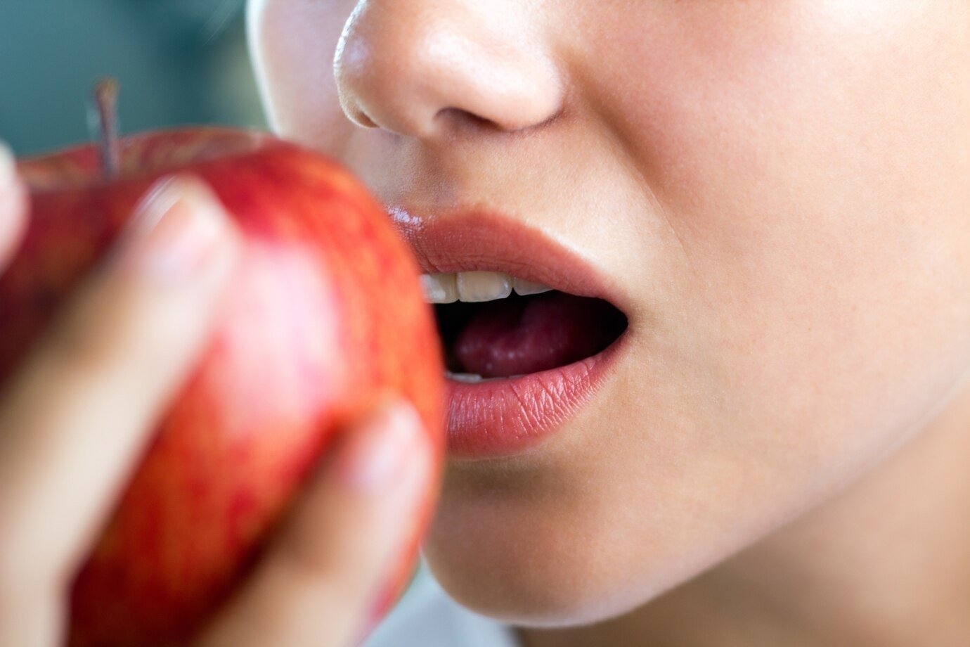 Кусает яблоко