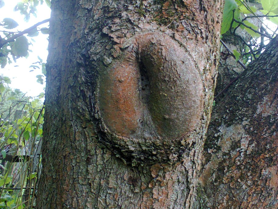 Сквозное дупло в стволе яблони