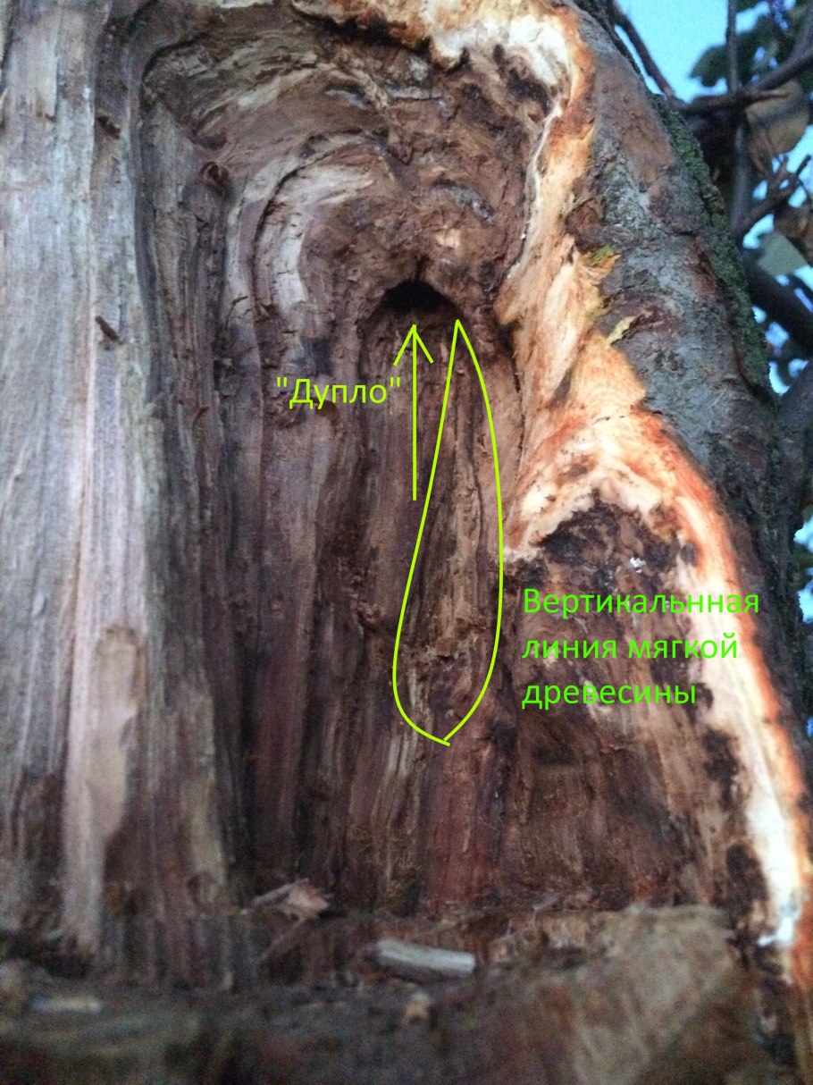 Дупло на плодовых деревьях
