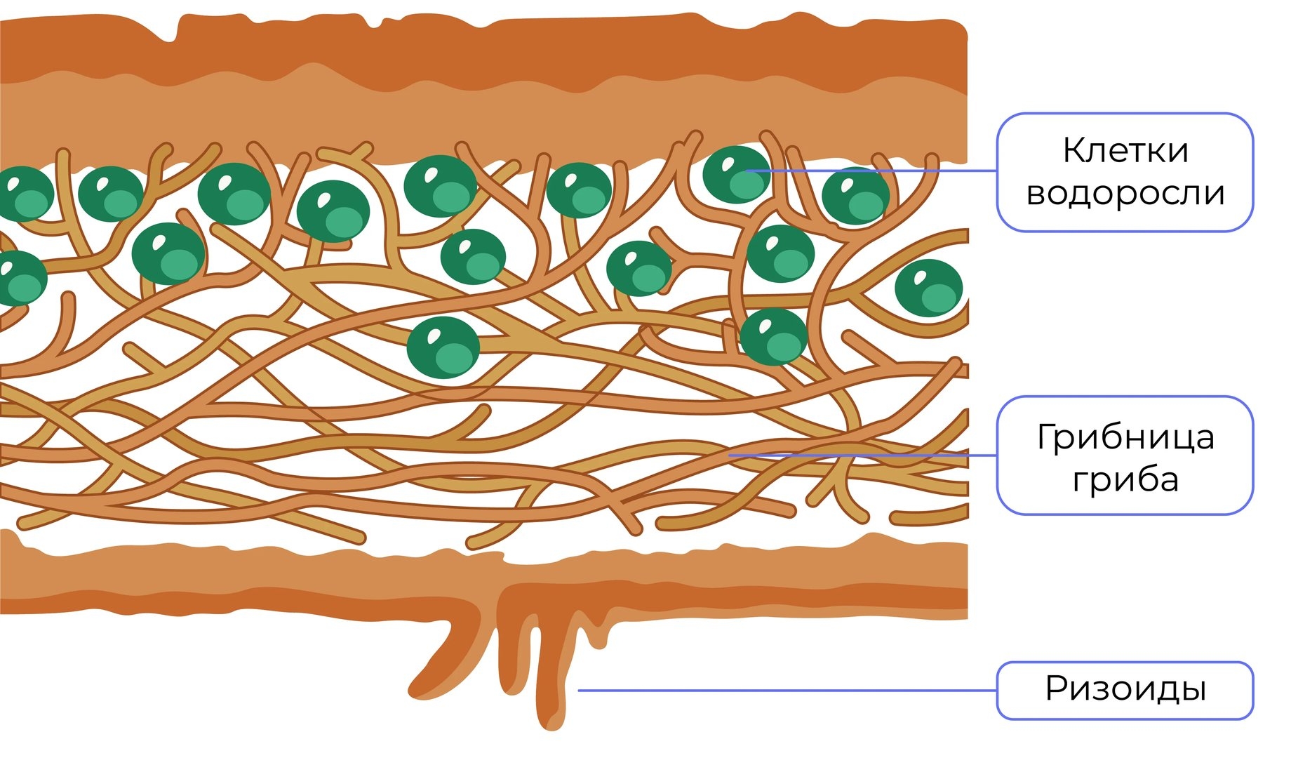 Внутреннее строение лишайника