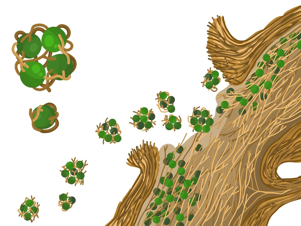 Симбиоз гриба и водоросли в лишайнике