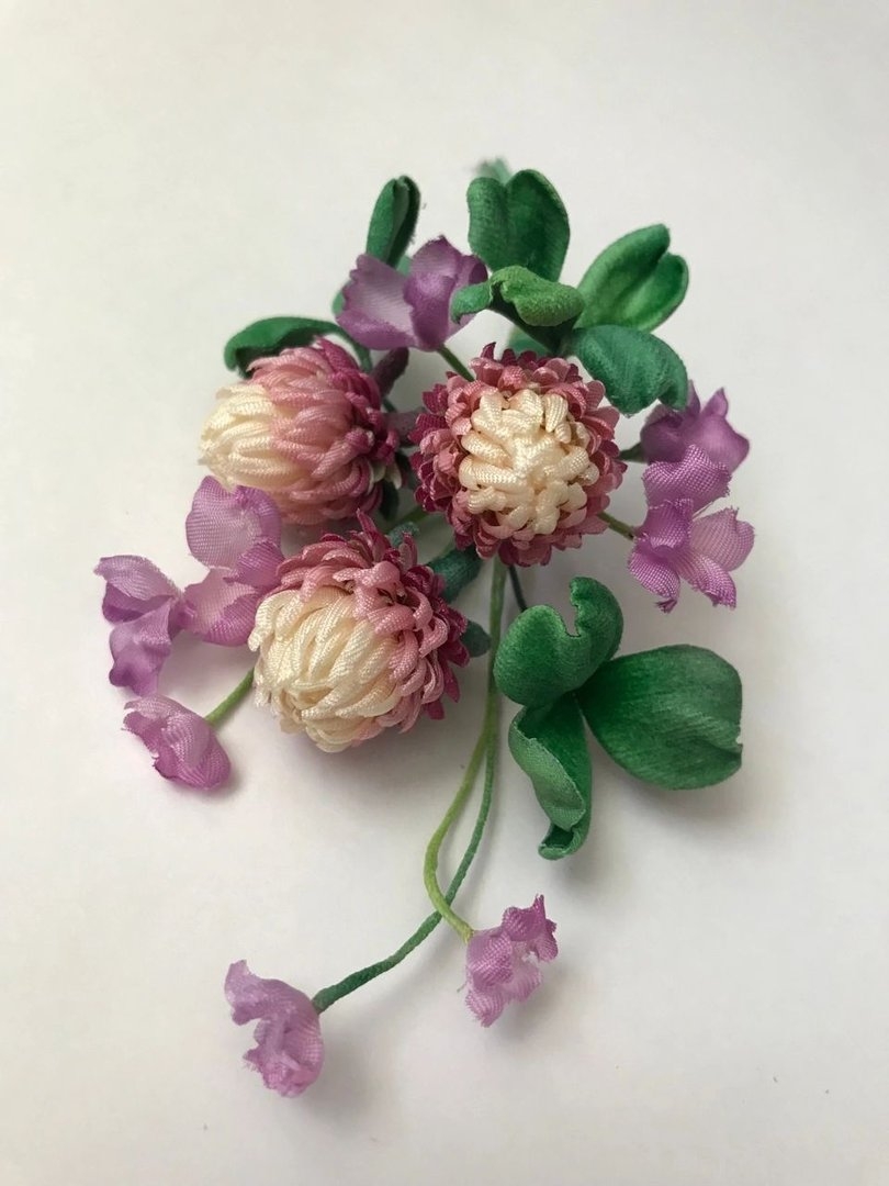 Мк брошь клевер из шелка