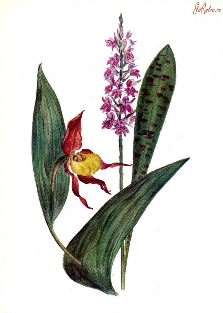 Венерин башмачок ботаническая иллюстрация