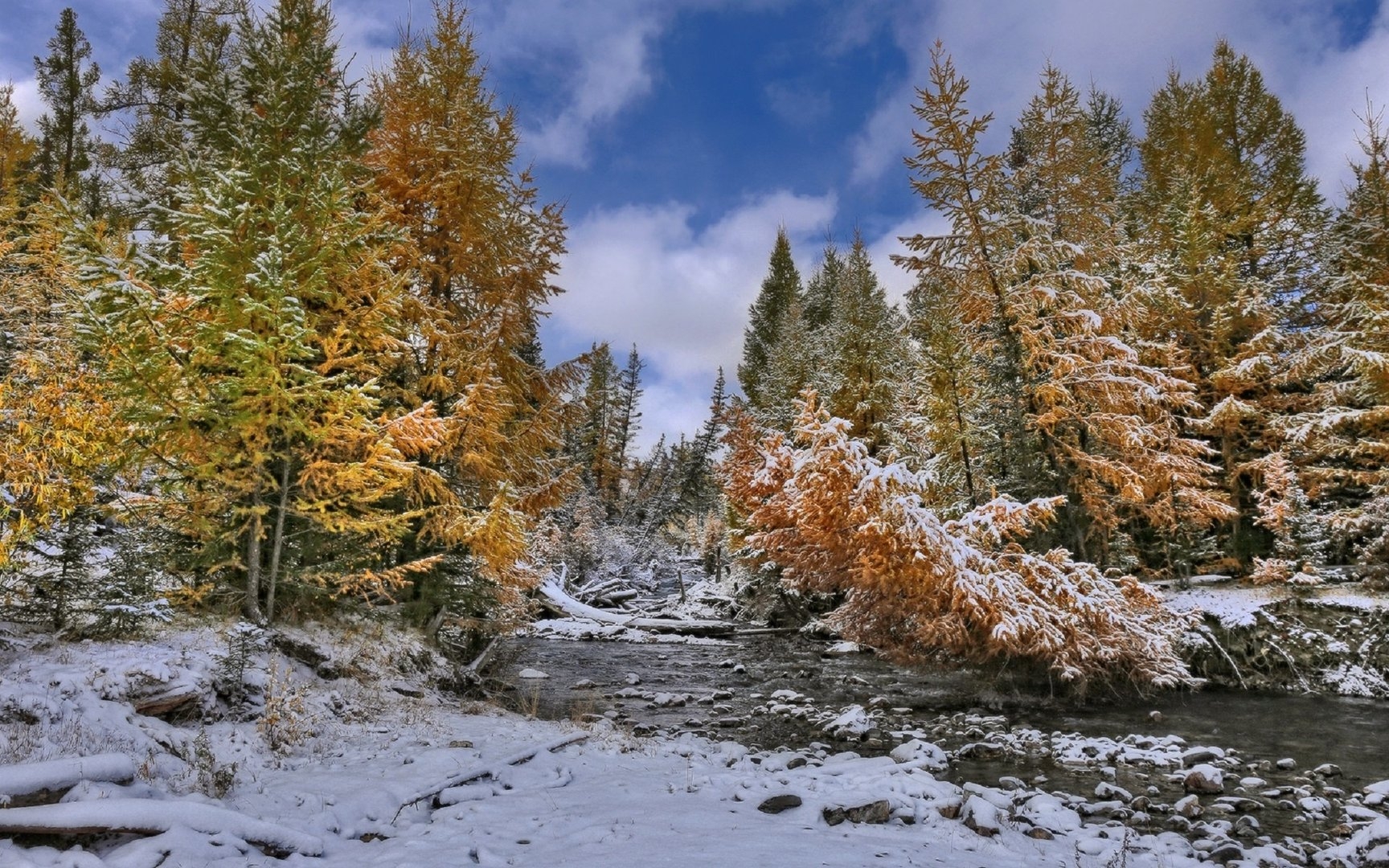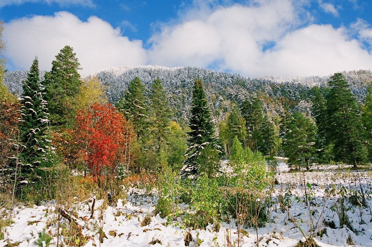 Горы осень снег